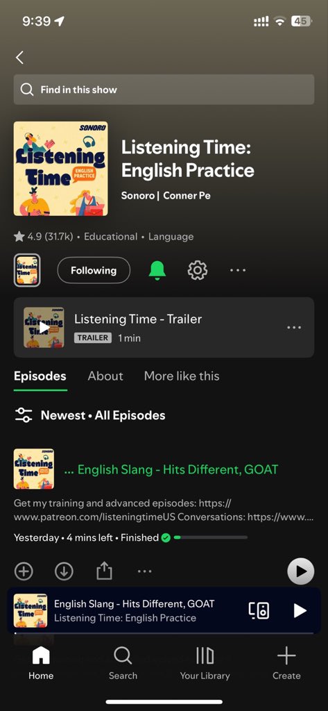 一个非常适合用来练习英语听力且评分超高的播客 https://podcasts.apple.com/us/podcast/listening-time-english-practice/id1556878879